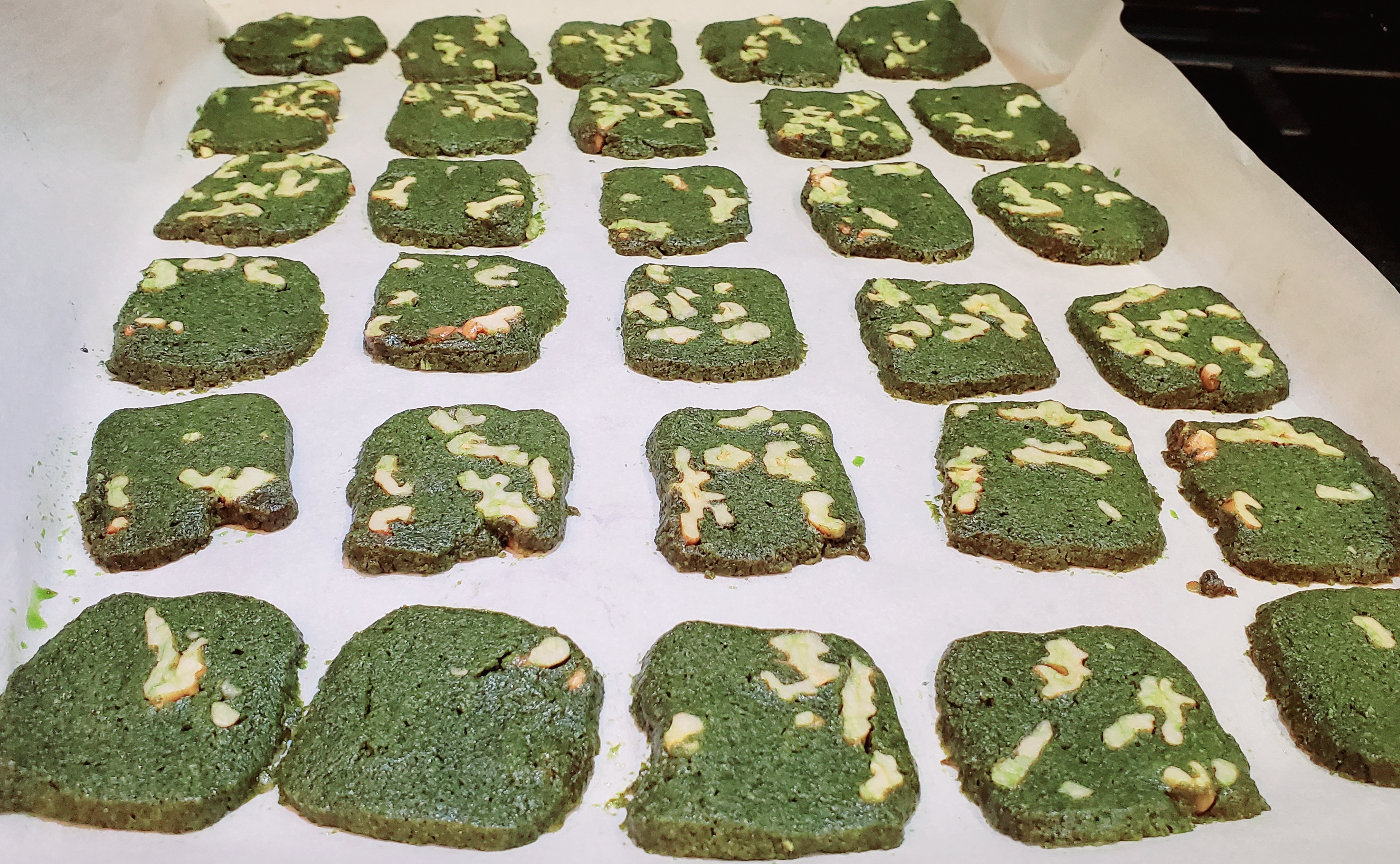 My dream matcha cookies should be bitter sweet with strong matcha flavor and nuts!