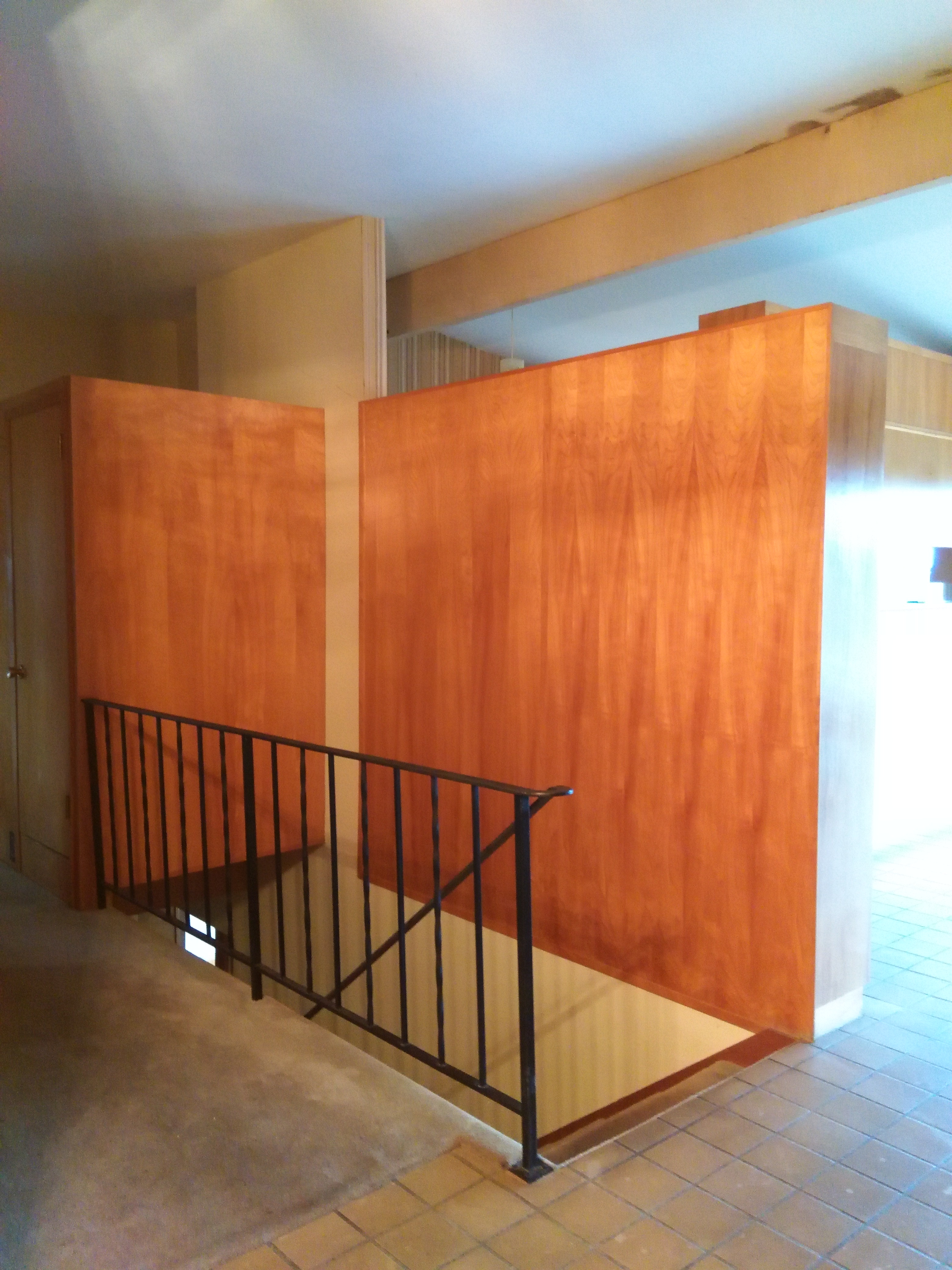 My husband and I bought this the house on an estate sale. This house was built in early 60s. Everything was original, and the design is the fashion of the 60s—cookie cutters spacing, teal green carpets, car port instead garage, interesting pattern wall papers, and dark brown wood walls with mirrors. The house was very dark owing to its cookie cutter design nature. My realtor said it was a ghost house with huge potential.