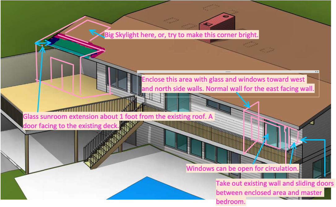 After I determined the flow of the house, I worked with the architect to revise the structure. I would like to have an extension in the living room, a convert the carport into a garage, finish the huge ugly unfinished areas and make it into another kitchen downstairs. We want a huge master bathroom, so we turn one bedroom into the master bathroom.