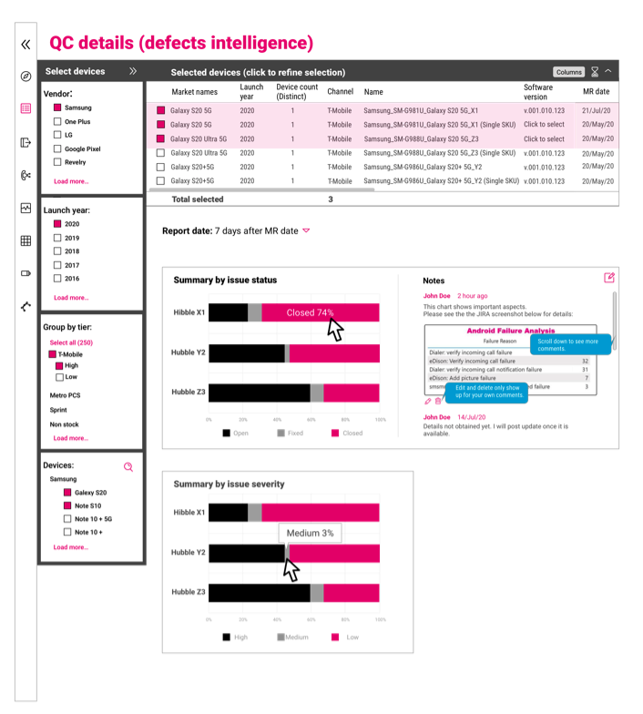 The Device Engineer team needed a design of a web portal where managers, PMs, test leads, and device manufacturer (OEM) engineers could input/retrieve data easily.